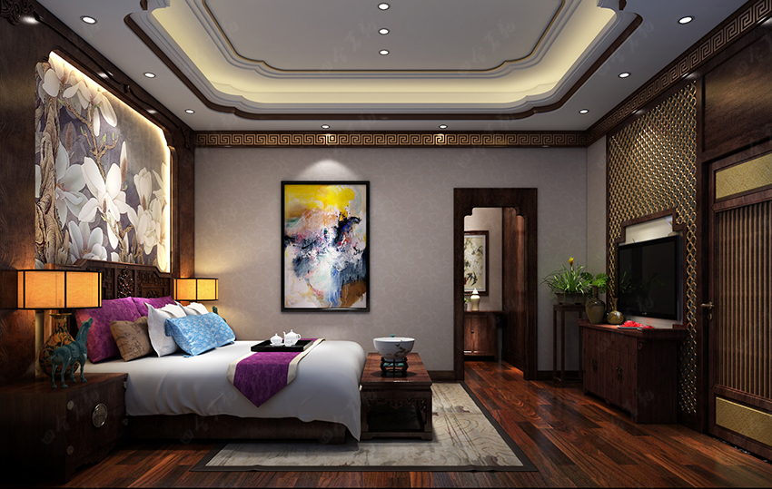 造型簡潔的家具,色彩豐富的軟裝,通過色彩及形體變化的挖掘來調(diào)節(jié)空間視點(diǎn)。古典的裝飾氛圍搭配現(xiàn)代的典雅燈具,詮釋出低調(diào)的奢華感。