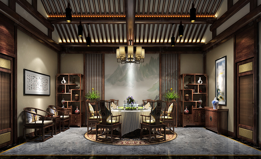 追尋往昔,我們不難發(fā)現(xiàn),真正的生活應(yīng)該和植物、山水、平和、文化結(jié)合在一起。設(shè)計(jì)師將這些概念寫入眾多裝飾元素:盆景、隔扇、山水畫、梁架、博古架、青瓷古玩,通過充滿匠心的布置合而為一,帶給人一種自然親切、古韻盎然的愜意體驗(yàn)。